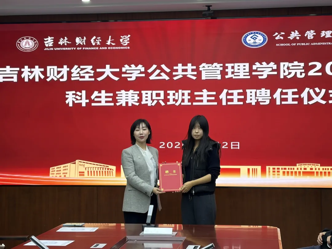 聘任仪式上,姜福奇宣读了《a片网站 关于聘任赵丹林担任2025级兼职班主任的决定》。