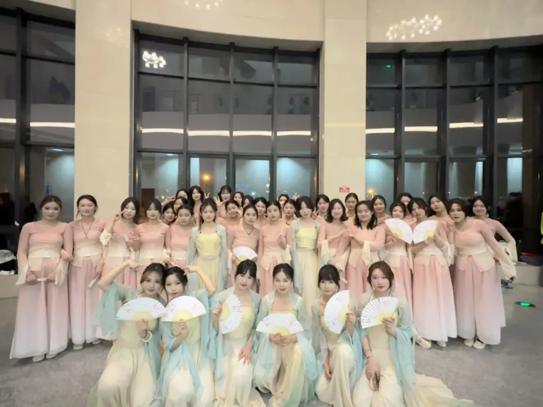 自确定参赛以来,全体队员便立刻投入到了紧张的备赛排练中。排练时,有基础的同学主动带着零基础的伙伴,从最基础的动作教起,一遍遍抠细节、顺队形,耐心打磨每一个转身与抬手。无论是默默追赶进度的新手,还是热心互助的伙伴,她们身上的团结与韧劲,早已比最终的奖项更打动人心。
